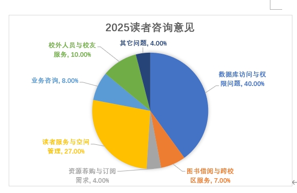 图书馆作为学校知识传播与学术交流的重要平台,始终秉持“以读者为中心”的服务理念,将读者意见视为衡量服务质量的关键指标。值此,全民阅读活动周之际,发布2025年图书馆读者意见分析报告,以期读者更加关注图书馆制度建设与管理创新,不断提升知识服务能力和水平,为建设“第一个图书馆”添砖加瓦。