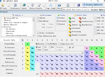 无机物领域:收录物相的标准衍射卡片涵盖约50多种科学研究领域,如电池材料、热电材料、超导材料、金属材料、陶瓷材料、矿物材料、金属合金、药物、聚合物等。同时含有粉末衍射数据和单晶结构数据;能够快速、准确物相鉴定,自动进行定量分析。