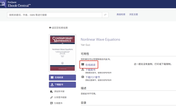1、Ebook Central平台访问(操作更简单,推荐使用)
