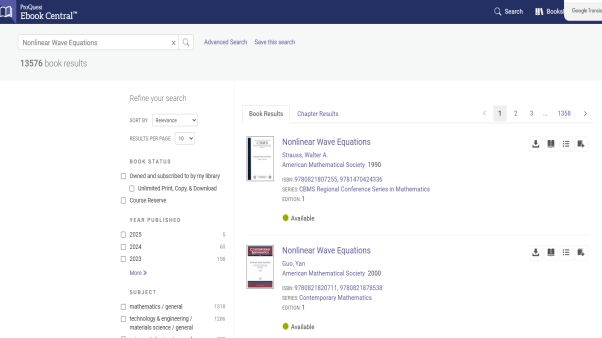 通过关键词、书名、作者或ISBN检索电子书。支持在线阅读、多用户同时访问、章节下载和整书下载。