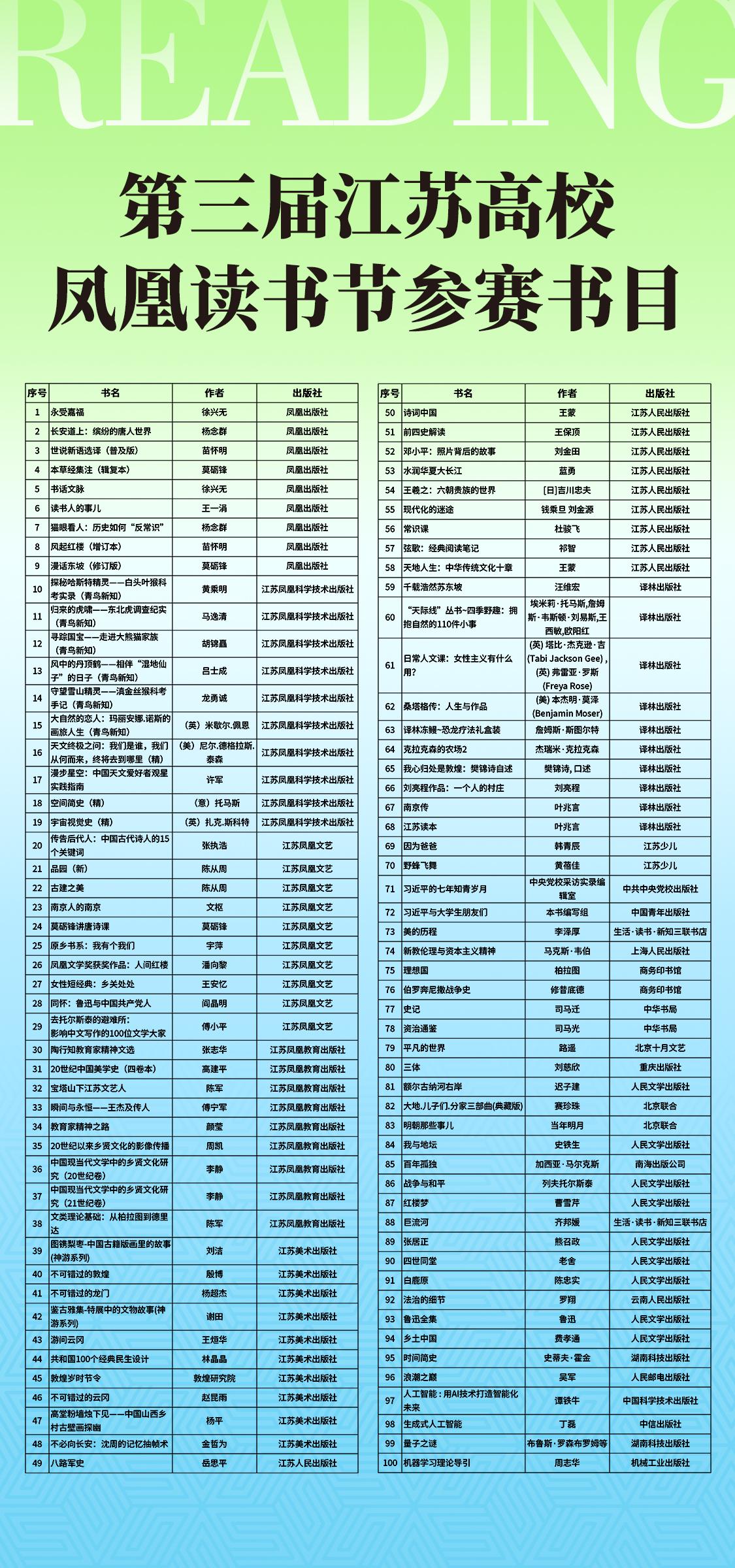 第三届江苏高校凤凰读书节活动概览