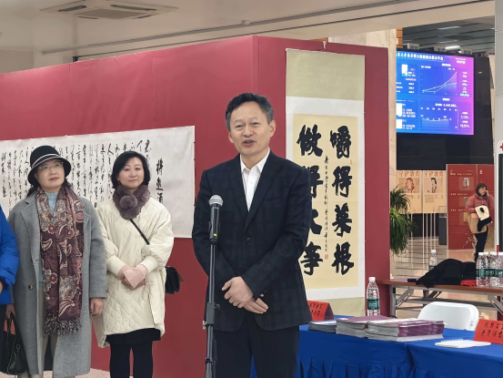 袁志康在致辞中表达了对母校深深的感恩与眷恋。回顾了自己五十余载的书法研习历程,系统阐释了其“雅俗共赏”的艺术理念,分享了如何在创作中融汇科学之严谨与审美之韵味的独到心得,并对恩师的悉心指导与家人的一贯支持表达了诚挚的感谢。他希望通过此次展览,与母校师友汇报交流,并激励年轻学子在钻研科学之余,亦能汲取中华优秀传统文化的滋养。
