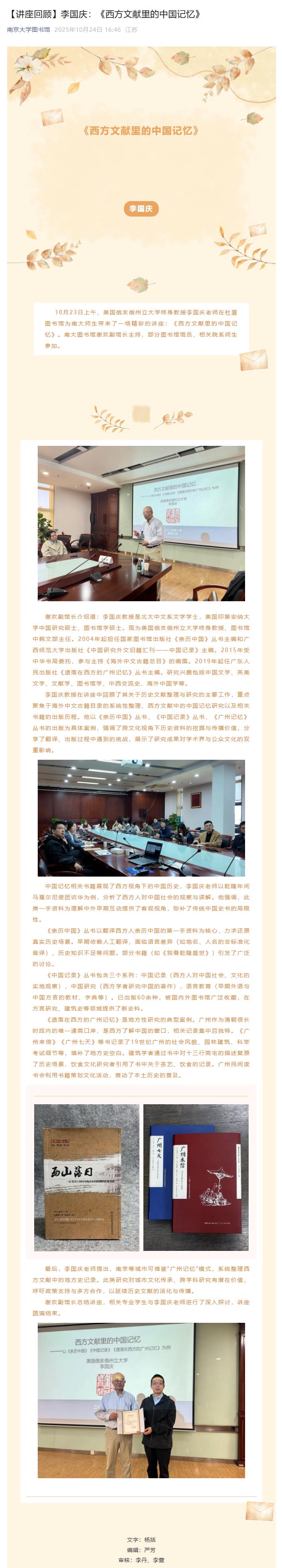 (5)【讲座回顾】李国庆:《西方文献里的中国记忆》