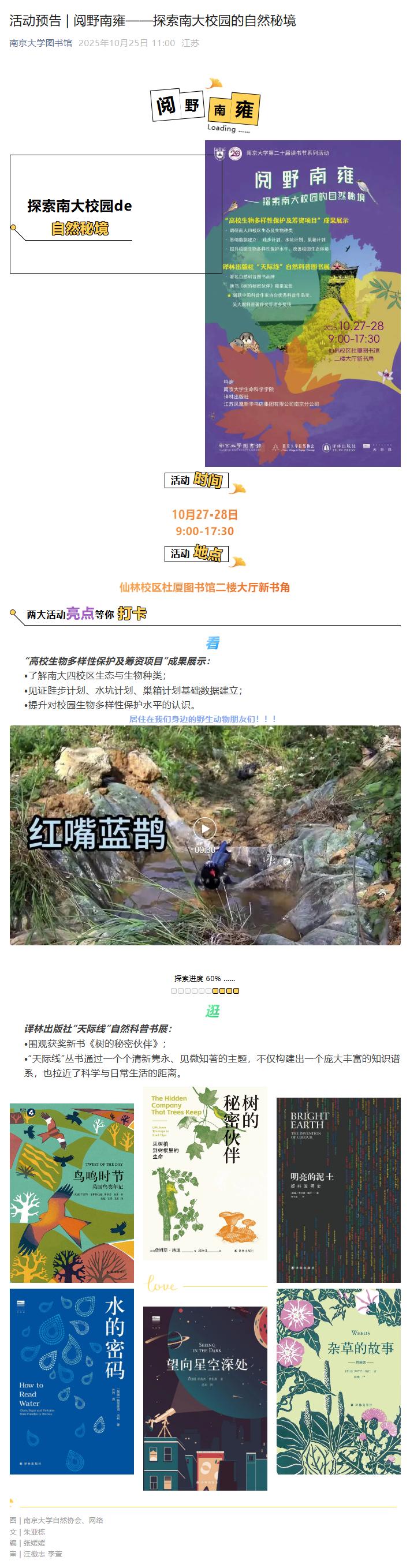 (18)活动预告 | 阅野南雍——探索南大校园的自然秘境