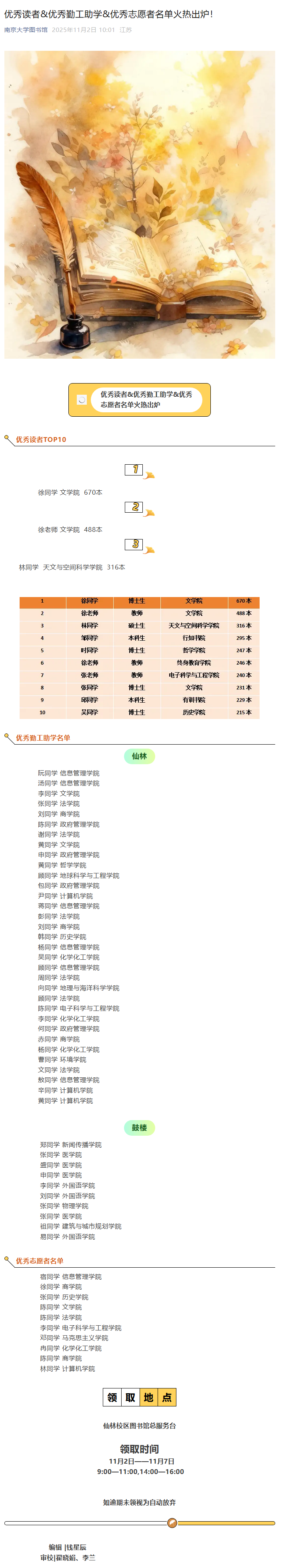 (23)优秀读者&优秀勤工助学&优秀志愿者名单火热出炉!